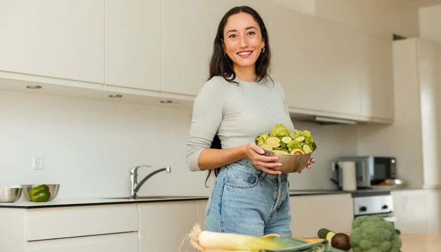 Valentina, our certified nutritionist, getting ready to prep something healthy before recommending it to you.