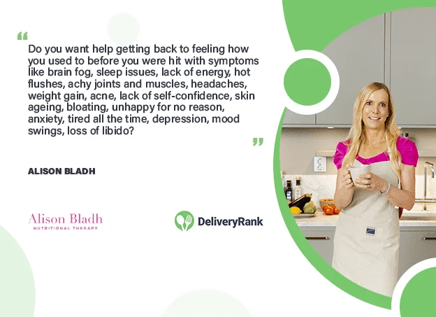DeliveryRank has the opportunity to chat with Alison Bladh, a dedicated registered Nutritional Therapist and Aesthetician, specializing in supporting women over 40 through perimenopause, menopause, and post-menopause. With a background as a best-selling author, health writer, and speaker, she offers personalized consultations and online programs to help women navigate midlife with confidence. Influenced by her upbringing on a farm in Southern England and her extensive travels, Alison combines her passion for food and holistic health to empower women to reclaim their well-being.