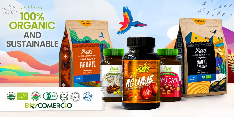 What are some of the unique characteristics and benefits of the native organic products you export from the Peruvian biodiversity?