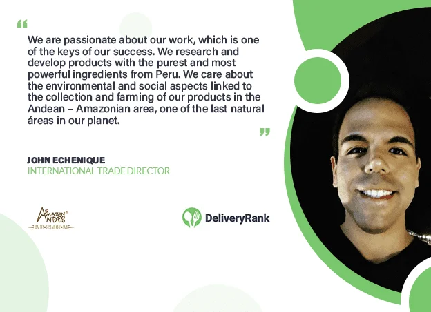 DeliveryRank chews the cud with International Trade Director of Amazon Andes, John Echenique: Amazon Andes specializes in manufacturing, distributing, and exporting functional superfoods, such as Maca, Cacao, Aguaje, and more, and they are truly passionate about their work. They prioritize using the purest ingredients sourced from Peru's biodiversity while caring for the environment and social aspects of their operations.