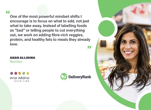 Healthy eating doesn't have to be complicated—or boring. Just ask Anar, a Registered Dietitian and Certified Diabetes Educator whose approach to nutrition is as refreshing as it is realistic. With a passion for good food and better health, she’s on a mission to simplify the noise around nutrition and help people feel amazing without giving up the foods they love. “Life is too short to restrict the foods you enjoy,” Anar says. Her philosophy? Eating well should be sustainable, enjoyable, and tailored to your lifestyle—not driven by trends or guilt. Whether you’re juggling a packed schedule, managing a health condition, or just looking to feel better in your body, Anar’s practical, no-nonsense guidance makes healthy living both approachable and rewarding. In this Delivery Rank’s interview, Anar shares how small, consistent changes can lead to lasting results—and why loving what you eat is the first step to lasting wellness.
