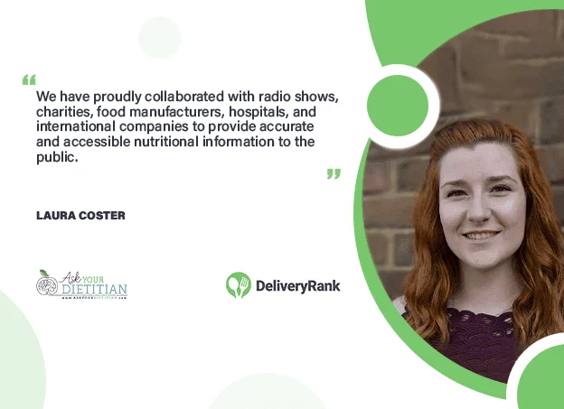 Laura Coster, the founder of Ask Your Dietitian, is a highly skilled specialist in various areas of nutrition, including eating disorders, digestive issues, diabetes, cancer care, and weight management. With extensive experience and expertise, she consults for both local and international companies, providing valuable insights on menu analyses, product formulation, nutrition in the media, and research. Leading the Ask Your Dietitian team, Laura is committed to delivering expert nutrition advice to clients worldwide. She is deeply intrigued by the intricate interplay between mindset, eating habits, and biology in shaping overall wellbeing. Laura and her team are dedicated to ensuring that everyone receives the support they need to achieve optimal health. With a focus on gut health, eating disorders, diabetes, and cancer care, Laura is passionate about her work both in clinical settings and in collaboration with media outlets and various projects beyond individual consultations. DeliveryRank has the pleasure of chatting with Laura.