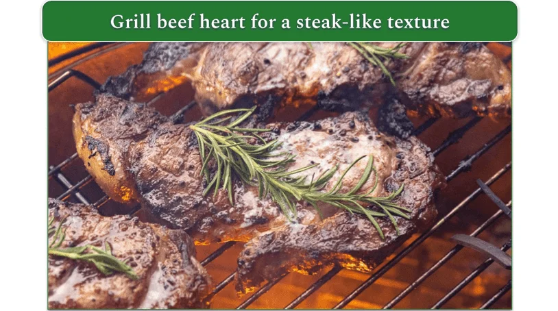 - Grill: Marinate slices of beef heart, then grill them like steaks. The high heat adds a smoky flavor while maintaining a meaty texture.