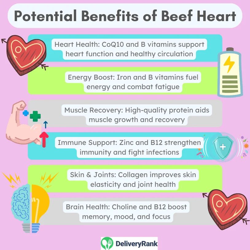 Beef heart can be a healthy addition to your diet. It's rich in protein, Coenzyme Q10 (CoQ10), B vitamins, iron, and collagen, offering potential health benefits. However, since it's still red meat, it’s best to consume it in moderation alongside other protein sources, especially if you’re concerned about saturated fat intake.