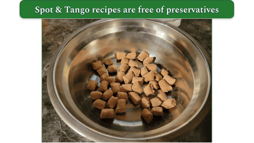 Spot & Tango has 2 varieties of dog food on offer. The more expensive option is fresh food made with premium, whole ingredients. The UnKibble is a unique take on dry dog food, combining the convenience of kibble with the health benefits of fresh food.