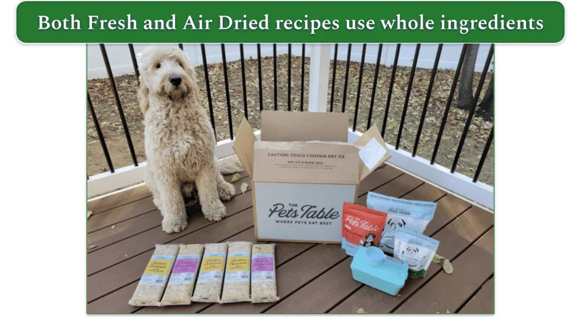The Pets Table offers a lot more variety than other competitors. Not only can you choose between fresh and dry meals (or a mix of both), but there’s also a wide range of proteins and flavors, so it’s easy to find a recipe that suits your pup’s tastes and work around any sensitivities.