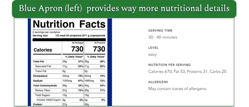 - Ingredient Quality and Nutrition: Blue Apron Provides More Nutrition Detail