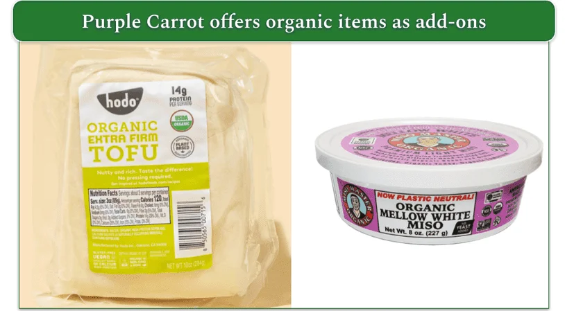 Both services add organic ingredients to their meals sometimes. In fact, the majority of Purple Carrot’s non-produce, including vegan cheeses, tofu, and yogurt, is organic. And you can be certain that you get food free of hormones and antibiotics if you order meals from either of these companies.
