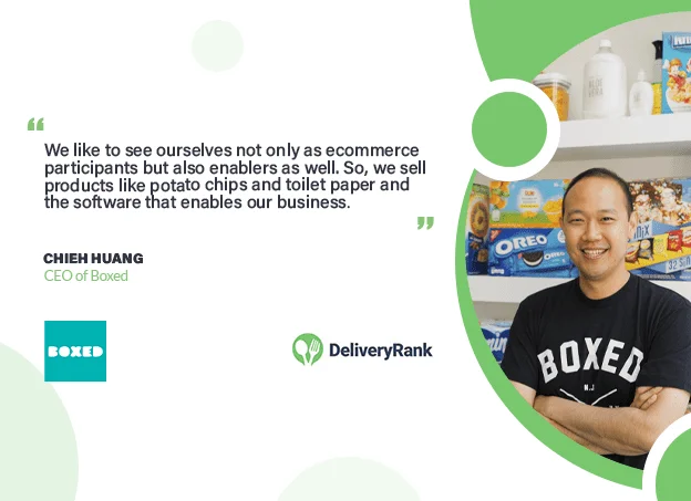 Boxed is an ecommerce participant and an enabler. We started off as a wholesale club and then built our own technology to help others sell.
