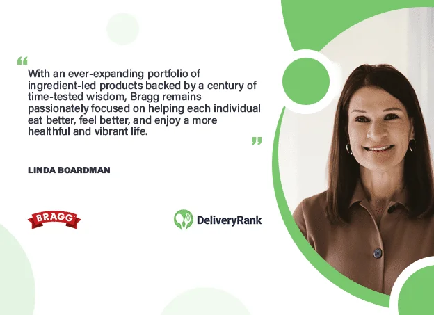 DeliveryRank meets Linda Boardman, the CEO of Bragg, a company with over a century of legacy in promoting healthy lifestyles. Under her leadership, Bragg continues to champion vibrant, healthful living by offering a diverse range of ingredient-led products. With a focus on making wellness simple and accessible, Linda upholds the pioneering spirit of Paul and Patricia Bragg, ensuring that the company's mission to help individuals live healthier and more vibrant lives thrives in today's world.