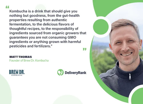 In 2006, Matt Thomas opened a teahouse with a simple mission: to share quality teas. Brewing kombucha in the basement soon turned into something bigger—so popular it had to be bottled. That spark grew into Brew Dr. Kombucha, now a nationally recognized brand. What sets Brew Dr. apart isn’t just flavor, but purpose. As the first major kombucha company to become B Corp Certified and achieve carbon neutral operations, Brew Dr. proves that business can thrive while staying true to its values. In this interview with Delivery Rank, Matt shares his journey from teahouse founder to kombucha pioneer, and how Brew Dr. balances growth with a mission to do good.