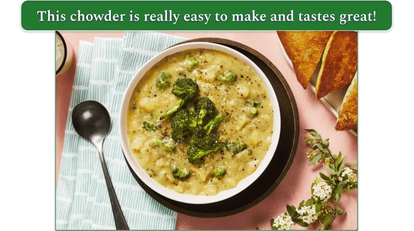 Author’s Tip: Here’s a bowl of roasted broccoli and cauliflower chowder, inspired by the Roasted Broccoli and Potato Chowder recipe from HelloFresh. Meal delivery services like HelloFresh make it easy to get inspired to try something new, and you can order up to 36 portions per week, making it a great service for families.