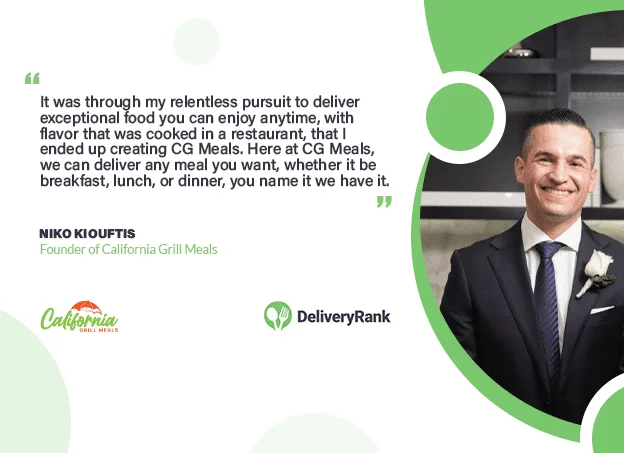 Niko Kiouftis, Founder of California Grill Meals (“CG Meals”), explains how he came up with the idea of delivering the freshest quality and most health-conscious meals to your door without sacrificing flavor or nutrition.