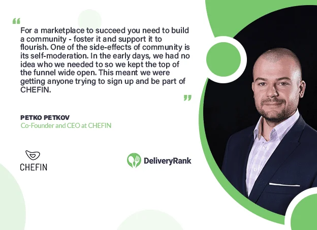 For a marketplace to succeed you need to build a community - foster it and support it to flourish. One of the side-effects of community is its self-moderation. In the early days, we had no idea who we needed to so we kept the top of the funnel wide open. This meant we were getting anyone trying to sign up and be part of CHEFIN. That enabled us to go through lots of profiles, develop a methodology to audit the chefs and create a strong & tight onboarding process. We had to develop a screening methodology with a very harsh test to enter - we call it the Chef Audition.