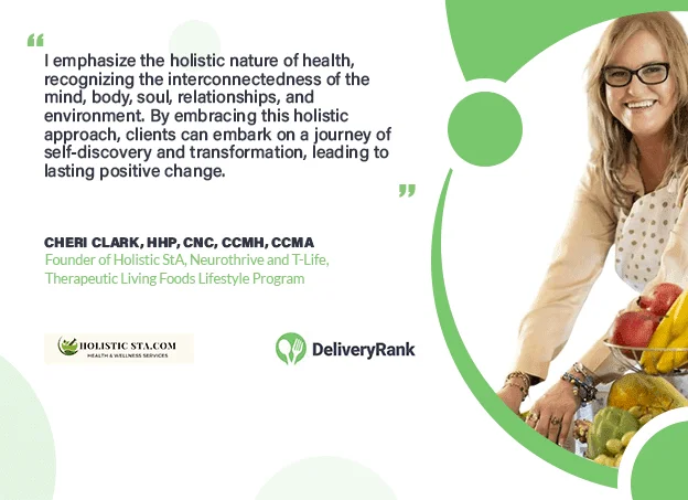 In the realm of holistic health and wellness, Cheri Clark emerges as a guiding light, armed with an impressive array of certifications and a passion for transformative healing. As a Certified Holistic Health Practitioner (HHP), Certified Nutritionist Consultant (CNC), Certified Clinical Herbalist (CCMH), and Certified Clinical Aromatherapist (CCMA), her expertise is not just extensive—it's profound. Yet, Cheri's impact stretches far beyond individual consultations, as she stands as the visionary founder of Holistic StA, Neurothrive, and T-Life Therapeutic Living Foods Lifestyle Program. Through her multifaceted endeavors, Cheri Clark not only illuminates the path towards holistic well-being but also fosters a community of empowered individuals committed to embracing their true potential. With each program she has founded, Cheri invites individuals to embark on a journey of self-discovery, empowerment, and profound transformation—a journey where vibrant health and radiant vitality are not just aspirations but tangible realities. Join Delivery Rank and read more.