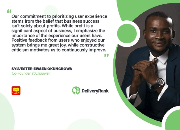 In the upcoming three months, our goal is to reach a significant milestone by handling orders worth N2 billion Naira. This translates to approximately over $500 million U.S. dollars’ worth of orders on our platform. After successfully achieving this target, our subsequent plan is to expand our services to selected countries within and around Africa. Our ultimate vision is to become the Google of food delivery in Africa, aiming for the association of "CHOPWELL" with the very thought of food delivery.