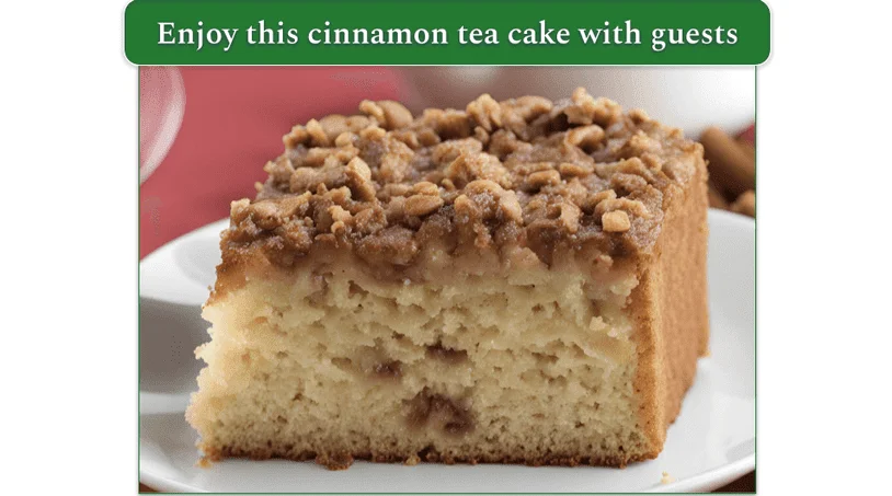 This cake offers a perfect balance of flavors – sweet, buttery, and aromatic. It’s versatile enough to serve for an afternoon snack or as a dessert after a meal. Whether paired with tea or enjoyed on its own, this cinnamon cake is sure to satisfy your cravings.
