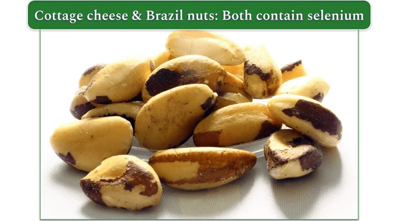 Cottage cheese is a natural source of selenium. This is an essential micronutrient for thyroid function. The thyroid has the highest concentration of selenium in the body. It uses selenium to produce selenoproteins that regulate hormones and maintain cell balance. Adequate selenium intake helps protect the thyroid from oxidative stress and supports normal hormone production¹².