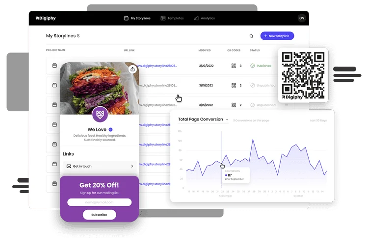 Digiphy is an all-in-one QR and no-code page-building platform. We focus on bridging the gap between the physical and digital worlds using QR and Digiphy Storyline pages. This forms a new marketing channel for brands of all sizes and types to get close and personal with their consumers and hit their business goals. Storylines are mobile-friendly pages brands can use to increase reorders and post-purchase engagement from every product and consumer touchpoint.