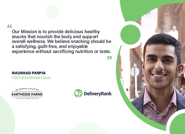 DeliveryRank meets Naushad Parpia, CEO of Earthside Farms. Naushad is dedicated to reshaping the snacking landscape. His commitment to crafting wholesome, flavorful, and nutritious snacks drives Earthside Farms’ innovative range of vegan and sugar-free offerings. With a focus on natural, nutrient-rich ingredients, Naushad aims to redefine healthy snacking, advocating for delectable treats that nourish and invigorate.