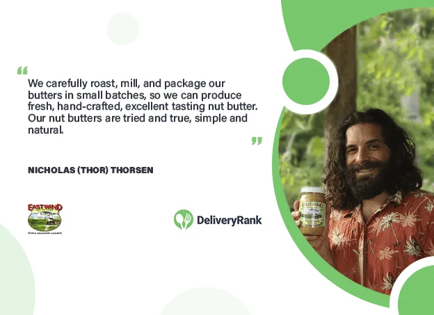 Nicholas "Thor" Thorsen is the public relations manager for East Wind Nut Butters and East Wind Community as well as the purchasing manager and co-manager of the sales and marketing team. He is involved with both East Wind Nut Butter’s wholesale and retail business ensuring raw materials are ordered and creating new opportunities for business. East Wind Crafts (East Wind’s Retail) was the first sales outlet for consumer products created and sold by East Wind Community members, offering nut butters directly to the public and small businesses. East Wind Crafts has modernized to include an E-commerce web-store, selling nut butters and Utopian Rope Sandals. East Wind Nut Butters’ wholesale produces their butters by the pallet for large distributors and co-packers that need their products by the hundreds or even thousands of pounds. Thor and the East Wind Nut Butters team are committed to providing a reliable and authentic experience for their customers. DeliveryRank finds out more.
