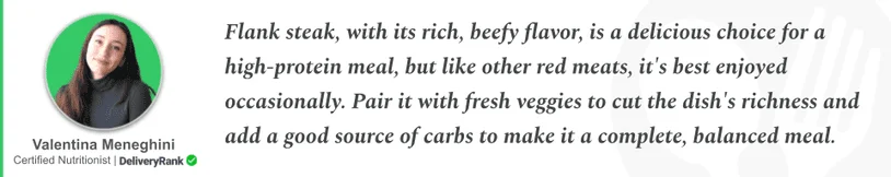 You'll love this dish if you're on a high-protein diet, but beware of its fat and calorie content, which is pretty high for a single meal. Consider pairing pan-fried flank steak with a generous carb-based side and some veggies for a balanced meal.