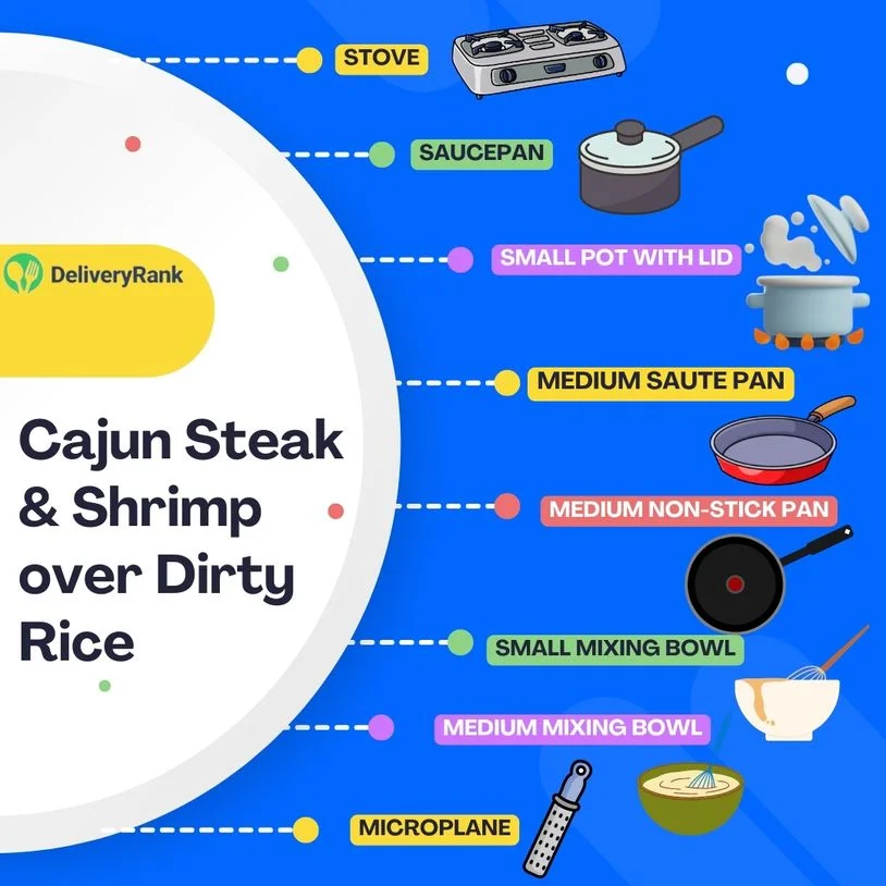 Cajun Steak & Shrimp over Dirty Rice is packed with nutrients. It's high in protein and fat, with a calorie count of just over 900.