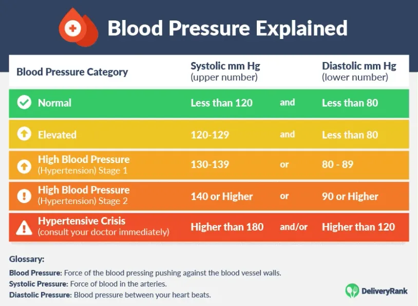 Blood pressure measures the force of your blood pushing on your blood vessel walls. It’s measured in two numbers: systolic blood pressure and diastolic blood pressure. Systolic measures the pressure in your arteries while your heart is beating, and diastolic measures the pressure in your arteries when your heart is resting in between beats. A healthy heart rate is considered somewhere in the range of 120/80.