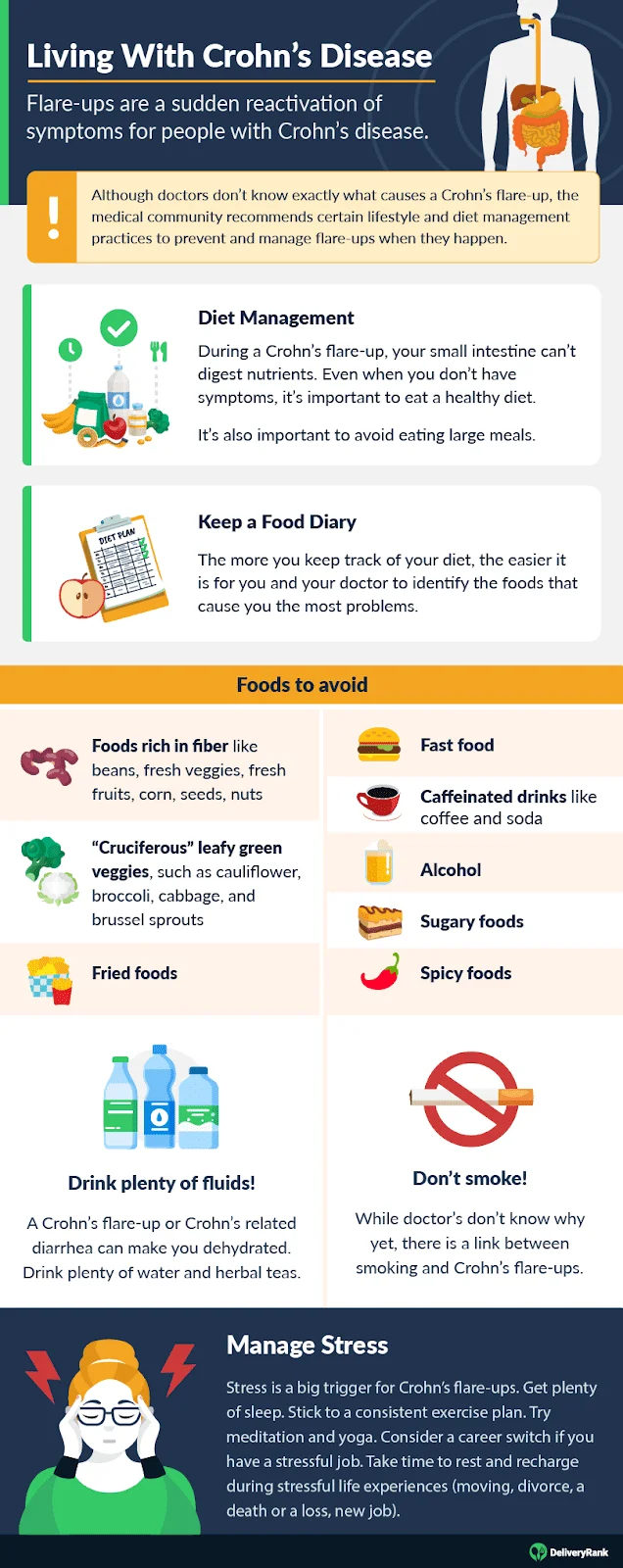 Crohn’s can go into a remission period, and return periodically causing painful and difficult-to-manage flare ups that may require hospitalization and major medical intervention.