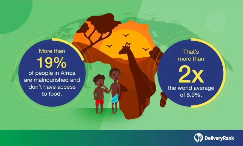 Africa faces a higher prevalence of undernourishment and food insecurity compared to any other region in the world. Over 19% of the population in Africa experiences malnutrition and lacks access to sufficient food, which is more than twice the global average of 8.9%.
