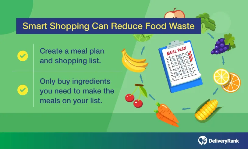 By creating a meal plan and shopping list, you can reduce food waste by only buying what you need and avoiding buying anything that may end up in the trash later. Not only will this reduce food waste, but also your monthly costs.