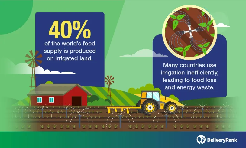 However, many countries have poor or inefficient irrigation systems, creating more food waste before crops are harvested. Alongside wasted produce, the mass of water and energy used to harvest the crops is also lost.