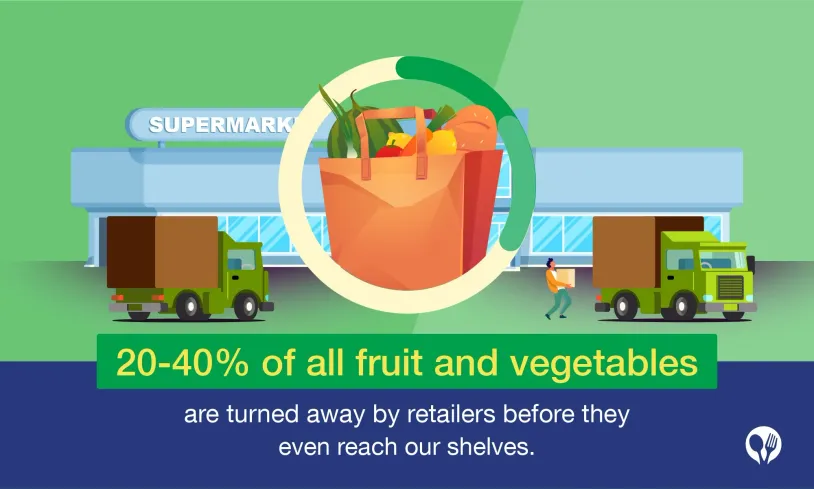Around 20-40% of all fruit and vegetables are wasted by retailers. We care too much about what our food looks like, so supermarkets don’t want to display “ugly produce” either — for fear of us not buying it. As a result, retailers generate 1.6 million tons of food waste per year.