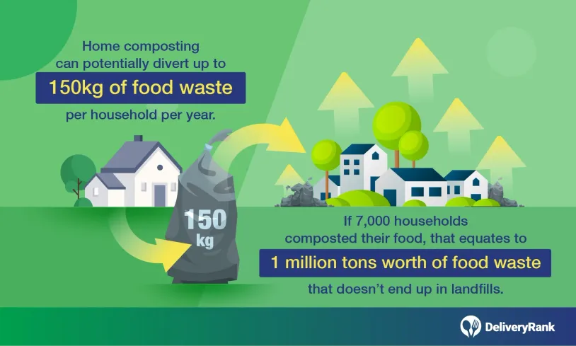 As consumers, if we all committed to composting any food that we throw out, we could potentially divert 150 kg of food waste per household, per year. It would only take 7,000 households to compost 1 million tons worth of food waste.