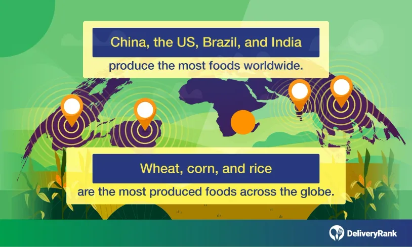 Among various food types, wheat, corn, and rice dominate production, and these 4 countries are their biggest producers.