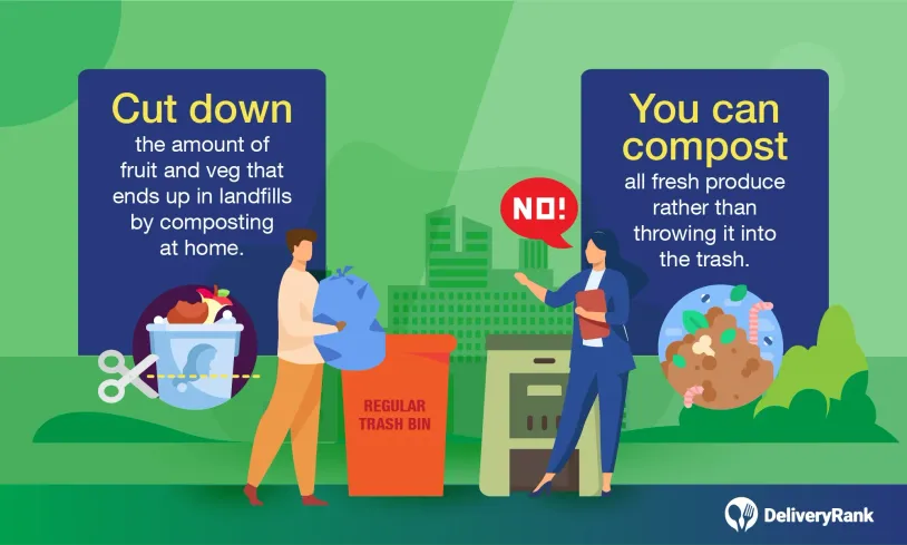 You can help avoid food waste ending up in landfills by composting fresh produce in your own home. All fresh ingredients — especially spoiled fruit and vegetables— can be composted easily. Since these are the single biggest wasted foods, it’s vital to make change wherever you can.