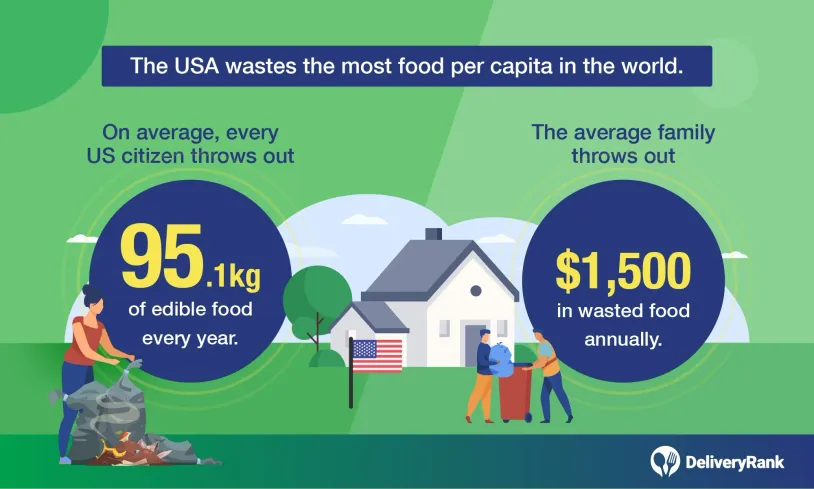 On average, the US wastes 95.1kg of edible food per person per year, which is the highest globally. The average family throws out $1,500 in wasted food each year.
