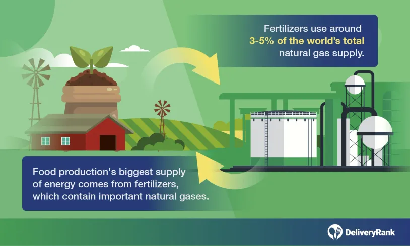 The single biggest energy input for food production comes from fertilizers. Most of these fertilizers contain vital compounds such as nitrogen and ammonia, which must be sourced from somewhere. That somewhere is the world’s vital resources.