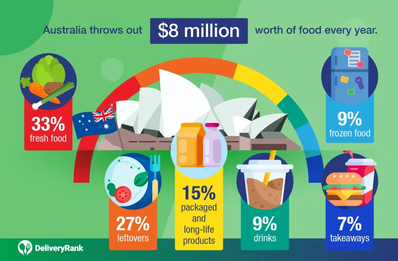 The most commonly wasted food is fresh food, accounting for 33% of all Australian food waste. Leftovers account for 27%, while the third most wasted food is packaged and long-life products. Drinks, frozen food, and takeaways also made the list, which only highlights our convenience-heavy lifestyle.