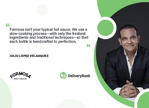 Julio Lopez Velasquez, CEO and Founder of Formosa Sauce Inc., has been dedicated to crafting healthy and flavorful hot sauces since 1984. Inspired by a family recipe from a small village in Mexico, Julio perfected this family treasure over the years. Today, Formosa Sauce Inc. proudly shares its 100% natural, vegan and glutenfree hot sauces, blending authentic flavors with a commitment to quality for over 39 years. DeliveryRank offers you an exclusive interview.