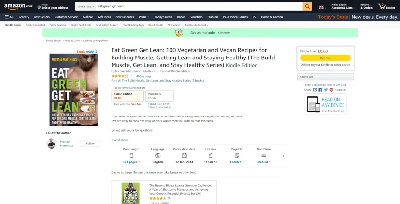Eat Green Get Lean presents a list of 100 recipes that will help you cut fat while getting enough of that all-important muscle-building protein. A perfect option for plant-based athletes. For some reason, this excellent book can be found for free on Kindle and barnesandnoble.com. Still, I’m not complaining.