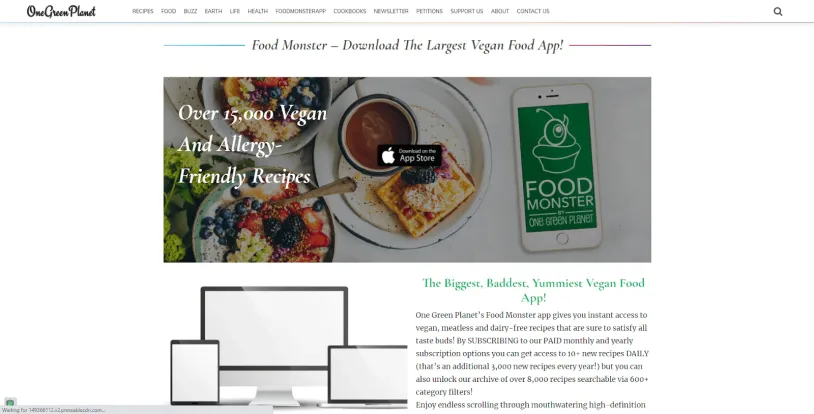 A popular website for vegan recipes, One Green Planet isn't just a blog. It's also responsible for the Food Monster app, a phenomenal resource for hundreds of free vegan and plant-based recipes. Search across themes (like Christmas) and categories (like spicy) to find the perfect recipe for you. And if you're willing to part with some hard-earned cash, subscribers have access to over 12,000 recipes.