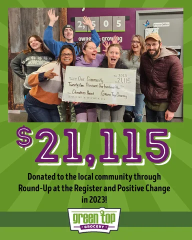 Lastly, we lead by example at Green Top Grocery! Our dedicated staff passionately embraces our mission, attracting team members who share our vision. This means team members understand our customers' needs because we're all united in our commitment to promote healthy eating and create positive change.