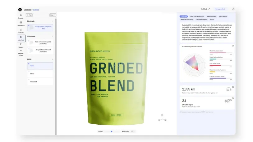 With Blueprint, businesses gain a powerful tool to seamlessly navigate various packaging materials and formats. The platform allows you to compare material considerations side by side in a dynamic environment