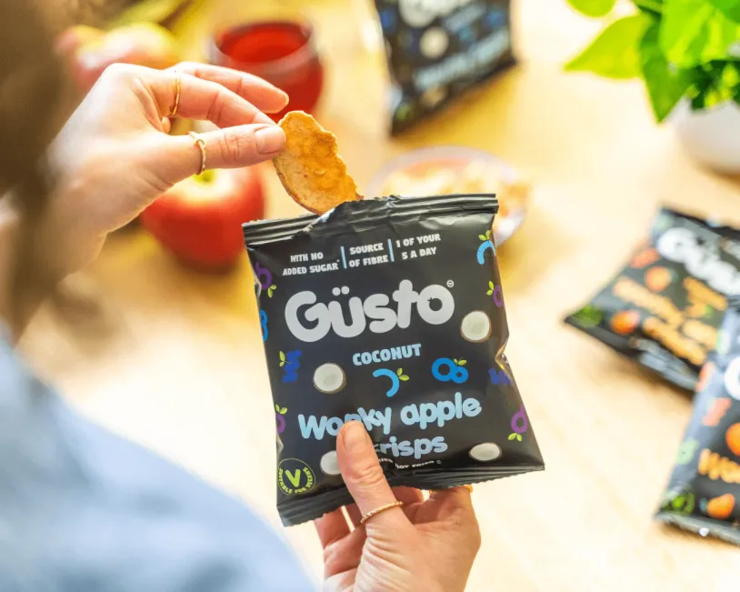 What inspired you to create Gusto, and how did you come up with the idea for air-dried fruit crisps?