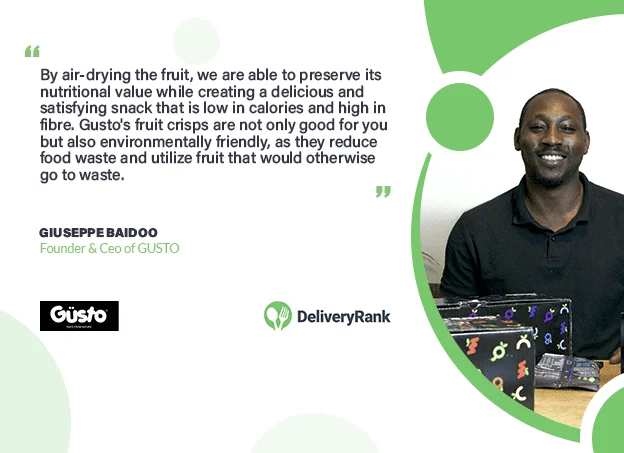 Welcome to today's Delivery Rank exclusive interview with the visionary behind Gusto, the revolutionary brand that has taken the snacking world by storm with their delectable air-dried fruit crisps. We have the privilege of delving into the mind of the founder, exploring their entrepreneurial journey, and uncovering the secrets behind the creation of this extraordinary snack sensation. Prepare to be inspired as we uncover the innovative thinking and passion that led to the birth of Gusto and discover how this visionary entrepreneur transformed a simple idea into a flourishing, fruit-filled empire. Get ready to feast on wisdom and insights as we unravel the fascinating story of Gusto and its captivating founder, Giuseppe Baidoo.