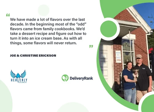 Joe and Chrissy Erickson, co-owners of Heavenly Creamery in Conneaut, Ohio, turned a once-dilapidated church into a beloved custard-style ice cream shop in 2015. Together, they handcraft more than 130 flavors each year in the shop’s basement kitchen, offering everything from classics to creative delights like Ginger Molasses Cookie and Pineapple Upside Down Cake. Their passion for quality and originality has made Heavenly Creamery a community favorite and a destination for ice cream lovers near and far. DeliveryRank finds out more.