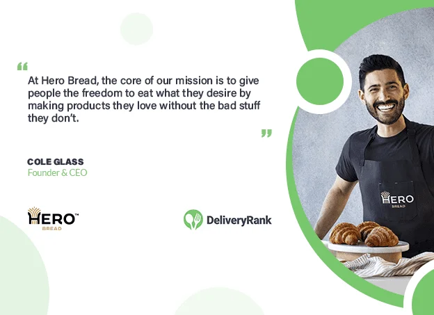 Hero Bread™ is a San Francisco-based food innovation company on a quest to help make life a little better and happier by evolving the joyful experience of bread and baked goods. Hero Bread™ products are real food, just as delicious as the original but with little to no net carbs, 0g sugar, fewer calories and more protein and fiber per serving than traditional products. In this feature Cole Glass, Founder and CEO of Hero Bread™ tells DeliveryRank their story.