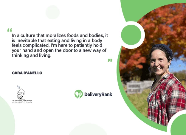 DeliveryRank meets Cara D'Anello, MS, RD, LDN, CYT (She/They), a Registered Dietitian specializing in chronic dieting, disordered eating, and eating disorders across all body types and minds. With five years of experience in eating disorder treatment and outpatient group practice settings, Cara provides a compassionate space for individuals to process their relationship with food and body, aiming to help clients reclaim agency around food and honor their bodily needs. Utilizing a Health At Every Size® (HAES) approach, Cara promotes health equity and the end of weight discrimination, fostering sustainable, authentic, and values-driven relationships with food.