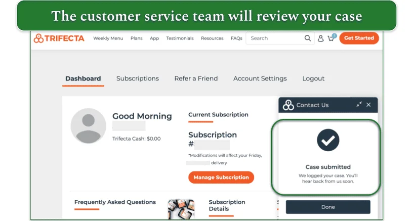 You have to directly contact Trifecta’s customer service to cancel your subscription, which is unlike the majority of other meal delivery services. The site has a few options, including phone and live chat. I’ll walk you through the best process below.